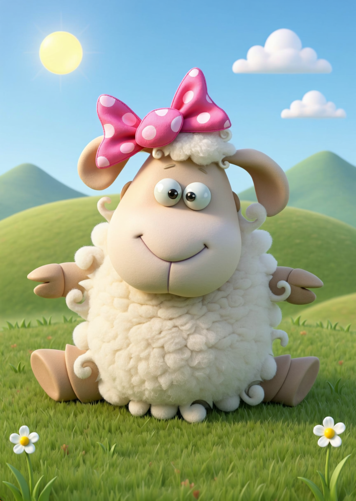 In a soft green meadow lived Lila the Lamb. Lila had fluffy wool and loved to smile all day long.